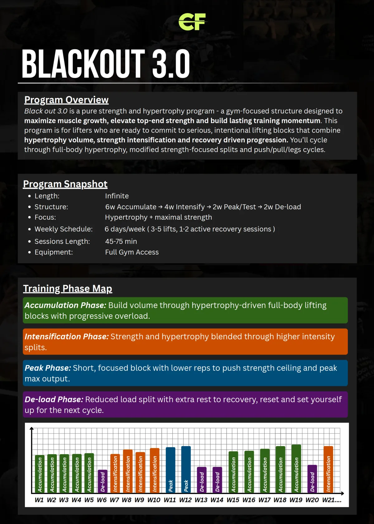 Blackout 3.0 is built around proven strength protocols, combining heavy compound lifts, targeted isolation work, and strategic recovery to ensure you maximize muscle growth while staying functional. Whether you’re training for performance or just want to fill out your sleeves, this program offers the perfect blend of intensity and structure.