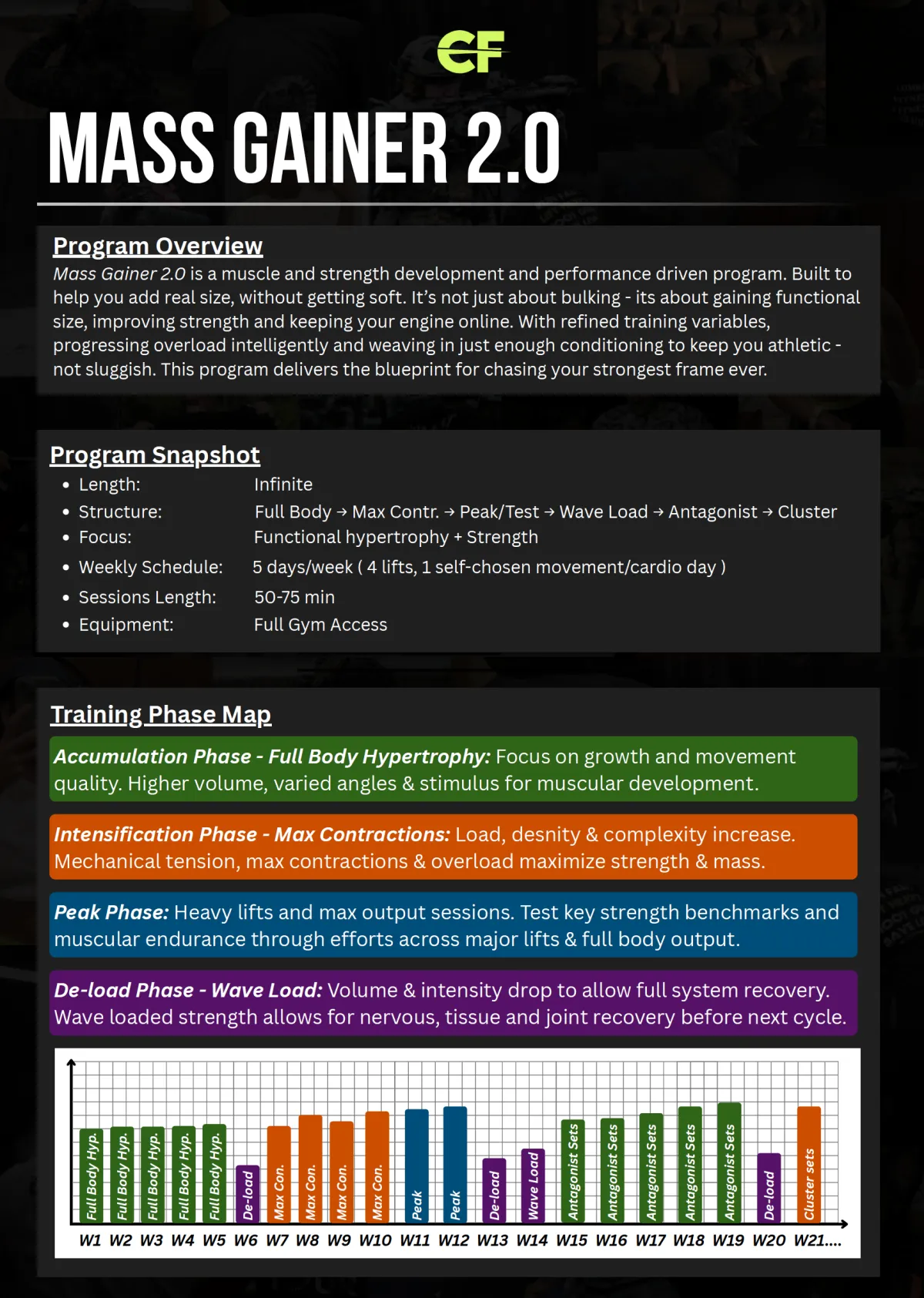 This is a no-nonsense, lifting-only program built to pack on serious mass with heavy compound lifts, high-volume hypertrophy, and a laser focus on low-rep strength gains.